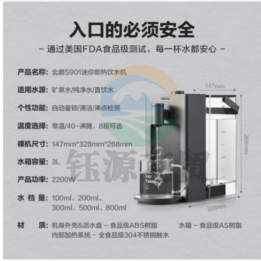 北鼎(Buydeem)台式饮水机办公室桌面即热式饮水机速热饮水机泡茶机智能饮水机一体机3L S902水墨灰