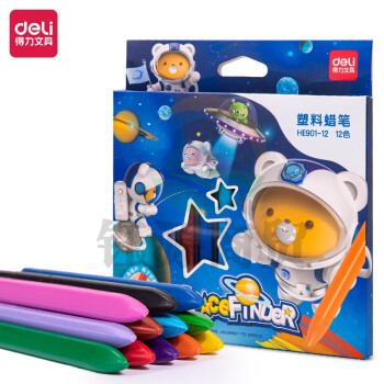 得力HE901-12彩盒装细三角杆塑料蜡笔(混)(12色/盒)