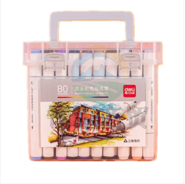 得力70803-80色酒精性三角杆马克笔(混)(80色/桶)