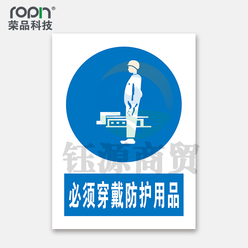 荣品 PVC国标安全警示标识牌验厂安检检查警示牌温馨提示定制订做自带背胶 必须穿戴防护用品 220×300mm