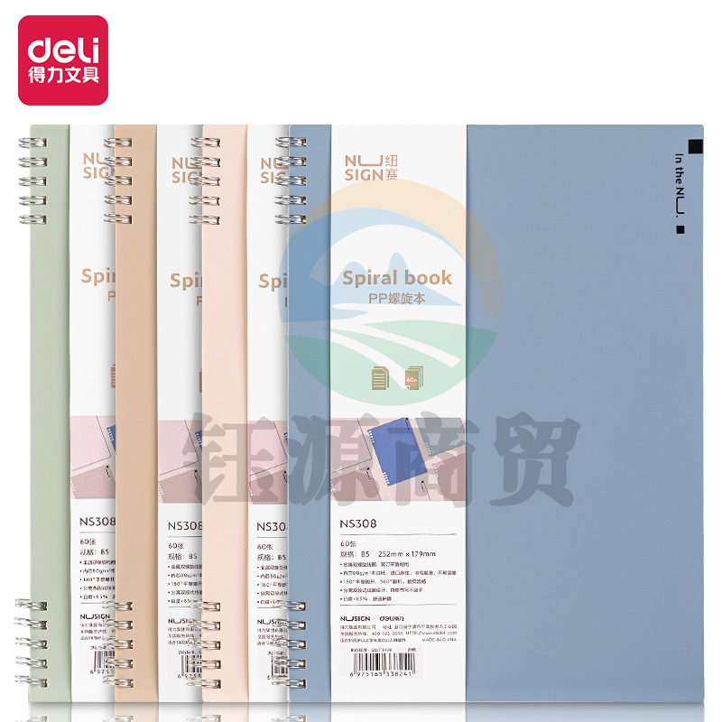 纽赛NS308不硌手PP螺旋本B5-60张(混)(本)