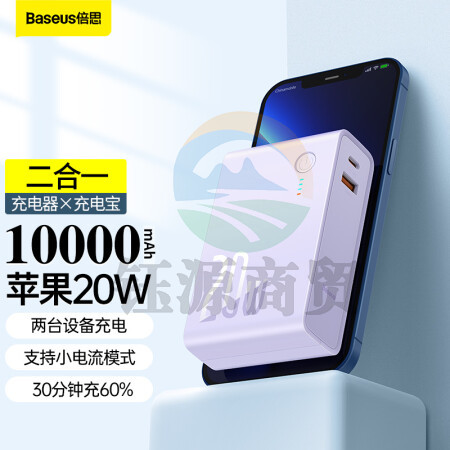 倍思 二合一充电宝充电器10000毫安时 PD20W双向快充移动电源 带插头快充便携适用苹果华为小米手机 紫