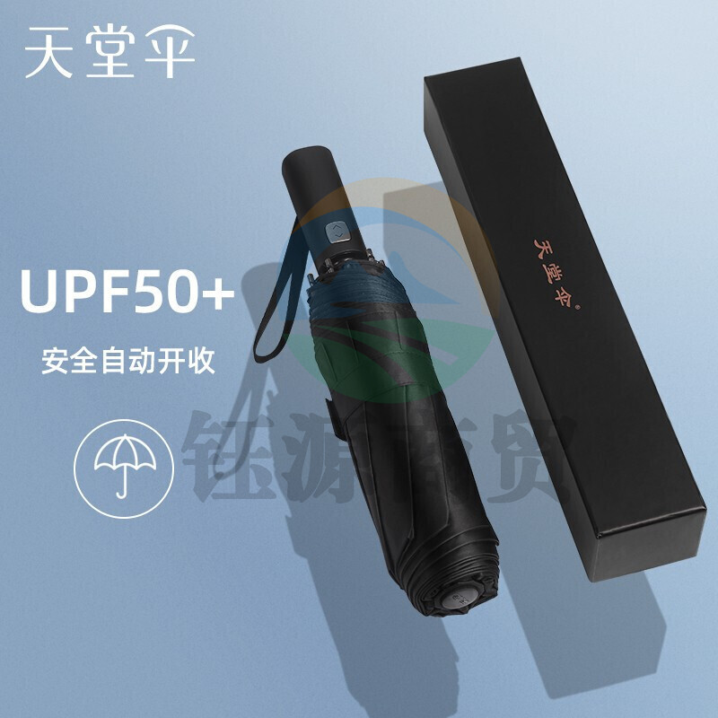 天堂伞 晴雨伞三折叠黑胶防晒遮阳伞升级安全自开收自动伞男女 黑色 60CM*8骨